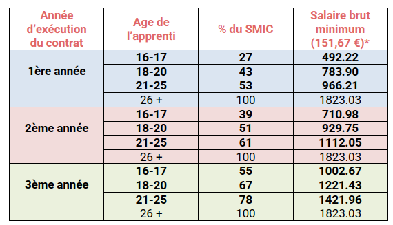 Des dispositions conventionnelles ou contractuelles peuvent prévoir une rémunération plus favorable pour le salarié. Les valeurs dans le tableau ci-dessus correspondent à une rémunération minimale imposée par la loi.