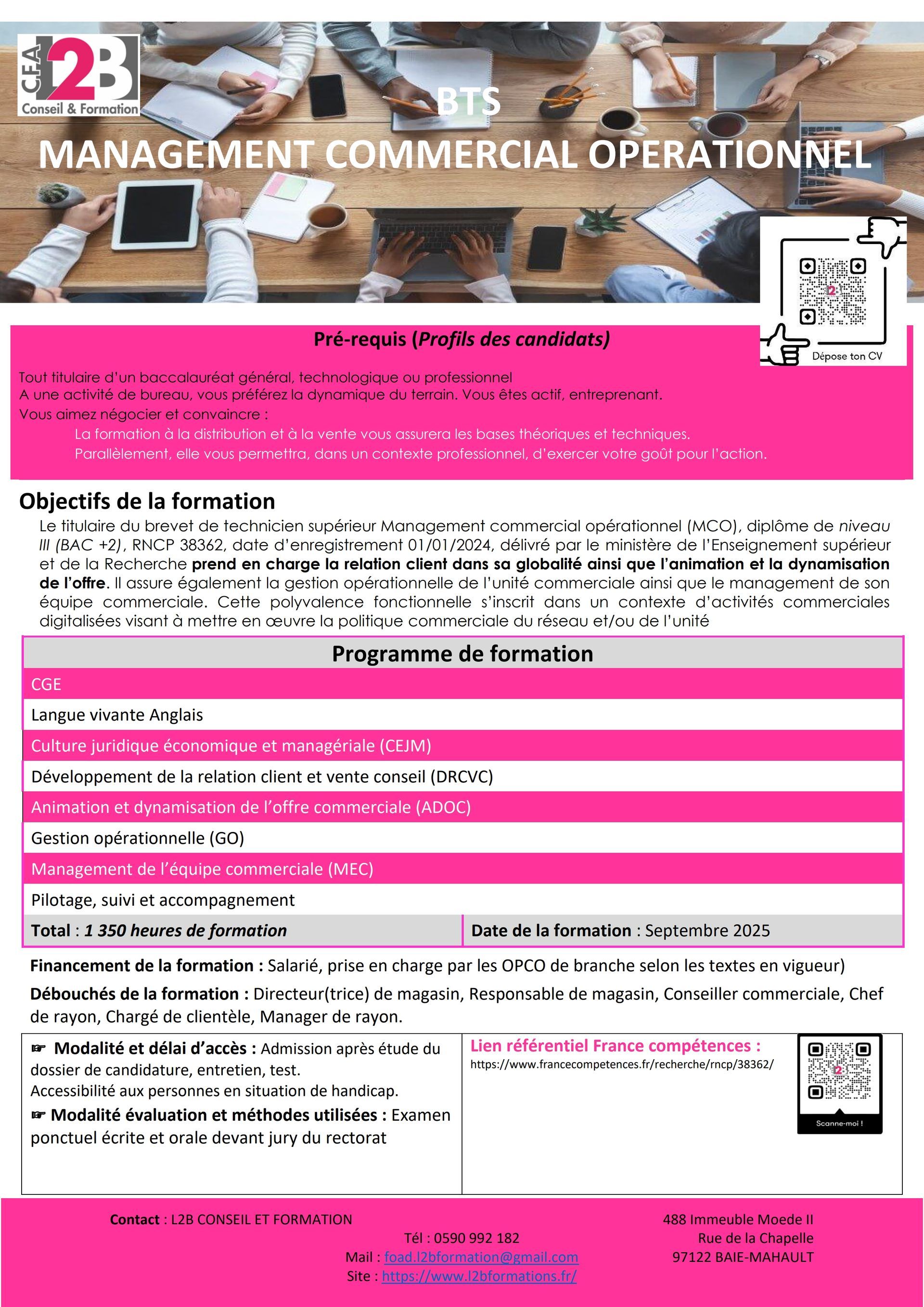 Vous pouvez télécharger le Plan de Formation BTS MCO